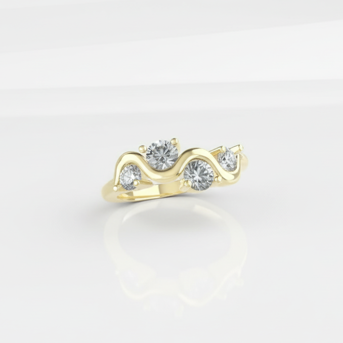 גל של יוקרה וסטייל - טבעת זהב 14 קראט בעיצוב גלי עוצר נשימה, המשדרת תנועה, חופש ואלגנטיות.