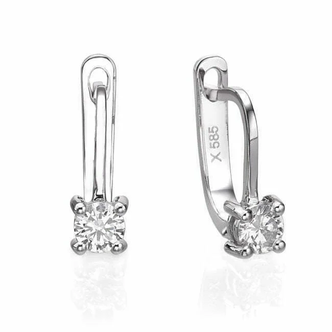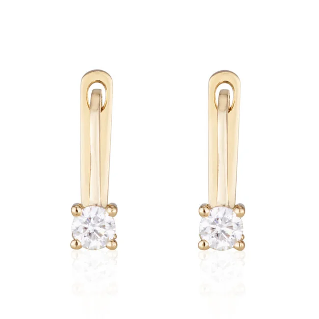 עגילי יהלום סוליטר תלויים, עשויים זהב 14K משובצים שני יהלומים במשקל 0.70 קראט עדינים ומעוררי השראה, למראה נקי וקלאסי עגילים בסגירה אנגלית בטוחה ואיכותית