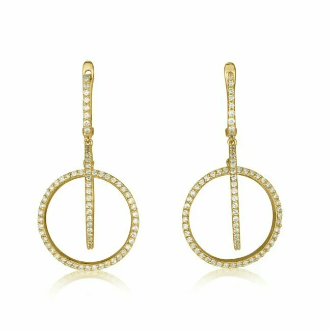 עגילי פרוסט עשויים זהב 14K עגילים עיגולים ארוכים משובצים יהלומים עדינים ומיוחדים