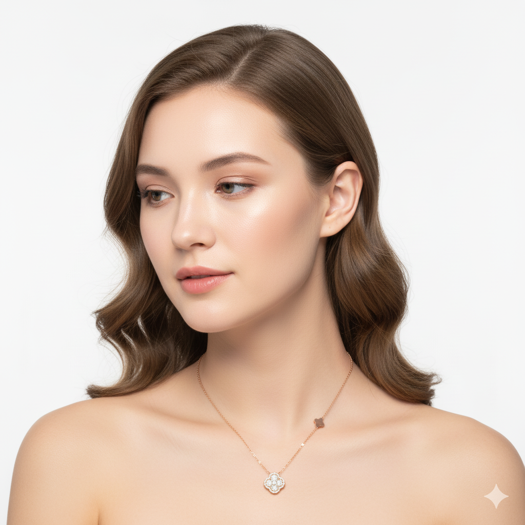 שרשרת תלתן כפול משלבת בין עיצוב אלגנטי לנגיעות של ייחודיות קסומה. עשויה מזהב 14 קראט במשקל 5 גרם, ומעוטרת ב-33 יהלומים נוצצים במשקל כולל של 0.35 קראט, היא מעניקה ברק עדין ומרשים לכל הופעה. עיצוב התלתן הכפול מסמל מזל, אהבה והרמוניה, ומוסיף נגיעה של משמעות אישית לצד היוקרה. מתאימה כמתנה מרגשת או כפינוק אישי, השרשרת הזו היא פריט על-זמני שילווה אותך ביום-יום וגם ברגעים מיוחדים.